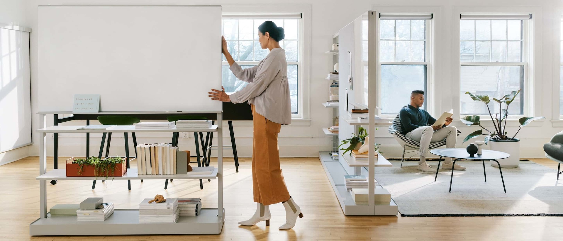A Herman Miller OE1 tárolókocsival és téglalap alakú asztallal azonnali integrációt hozhatsz létre, akár egyes darabokat vagy a teljes kollekciót használva