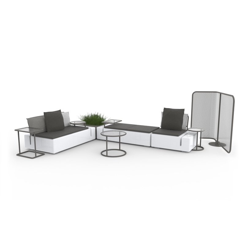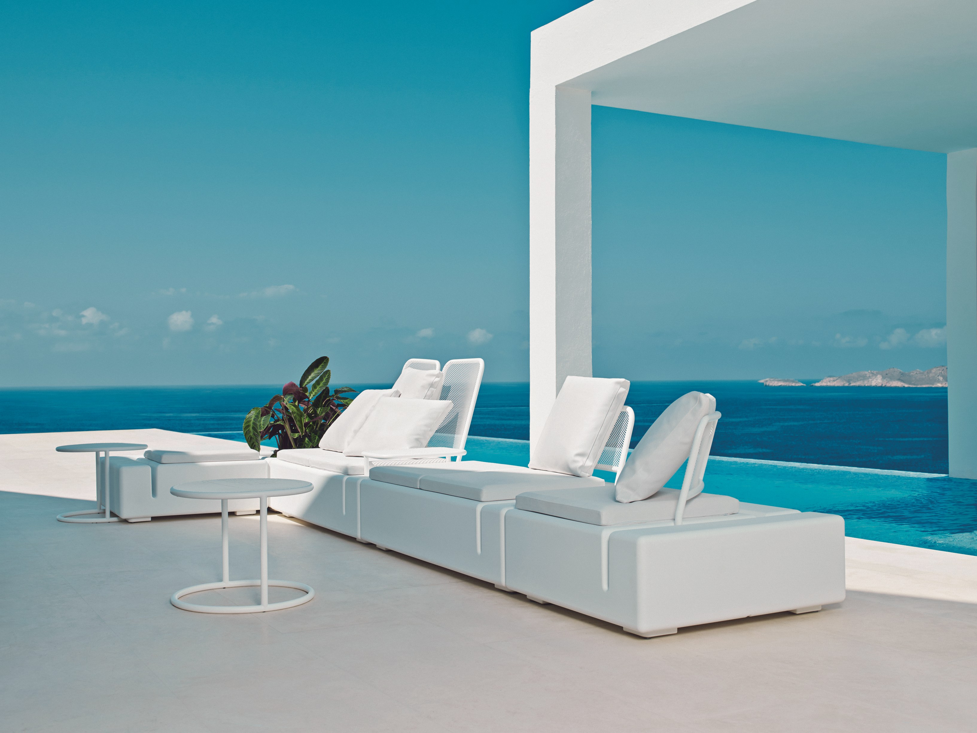 KES is a modular seating system for furnishing outdoor spaces. The main objective is to create endless and articulated compositions; sofas, chaise and lineal and angular poufs. Either armchairs formed by individual elements or large islands as a result of the union of several parts. The most interesting feature in this project is the visible cut on the base part, which makes it possible to insert additional elements, such as backrests, armrests and tables. This cut becomes an architectural, decorative and practical symbol, which is dintinct and useful, simple as well as complex, and of great worth in the interpretation of this product.